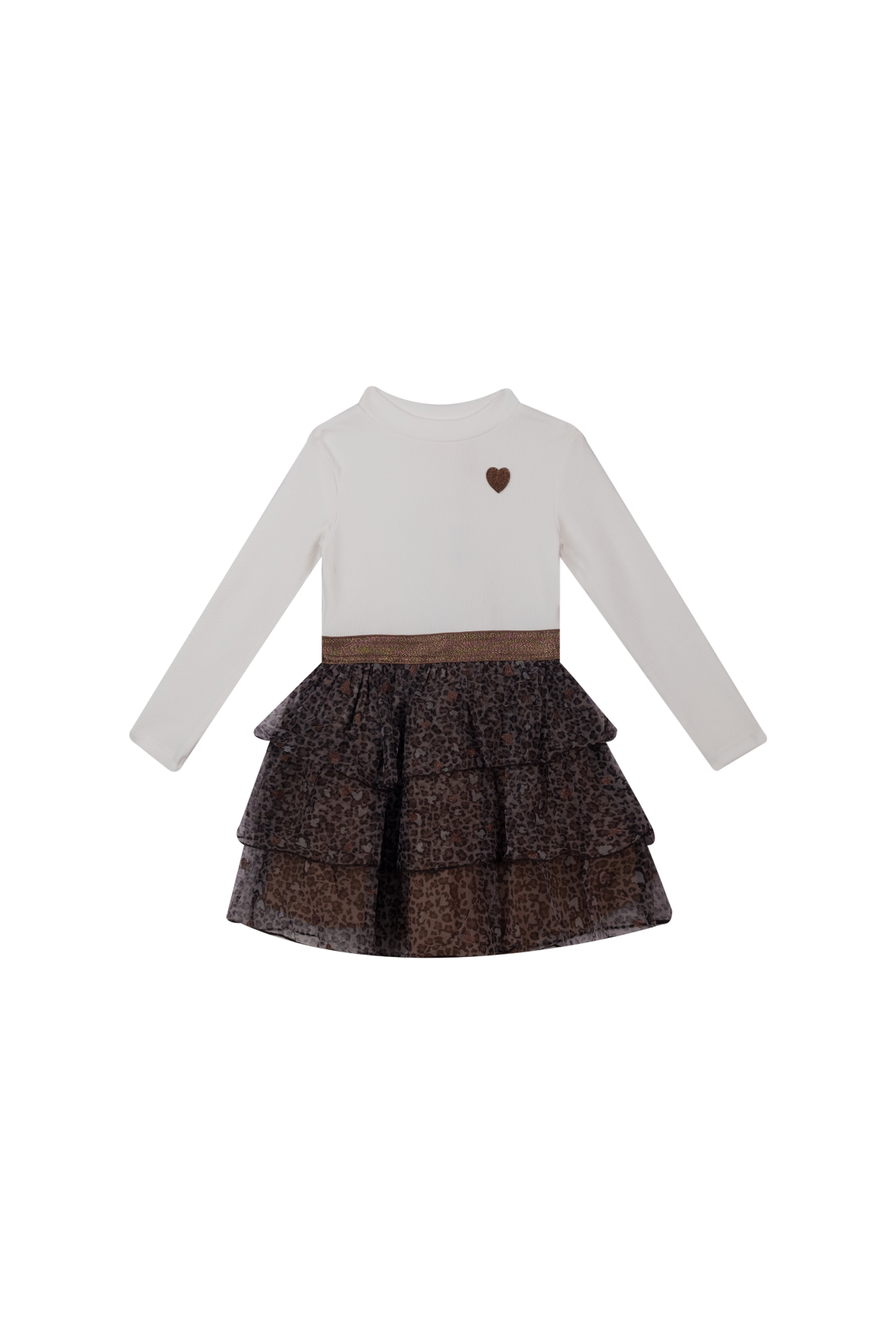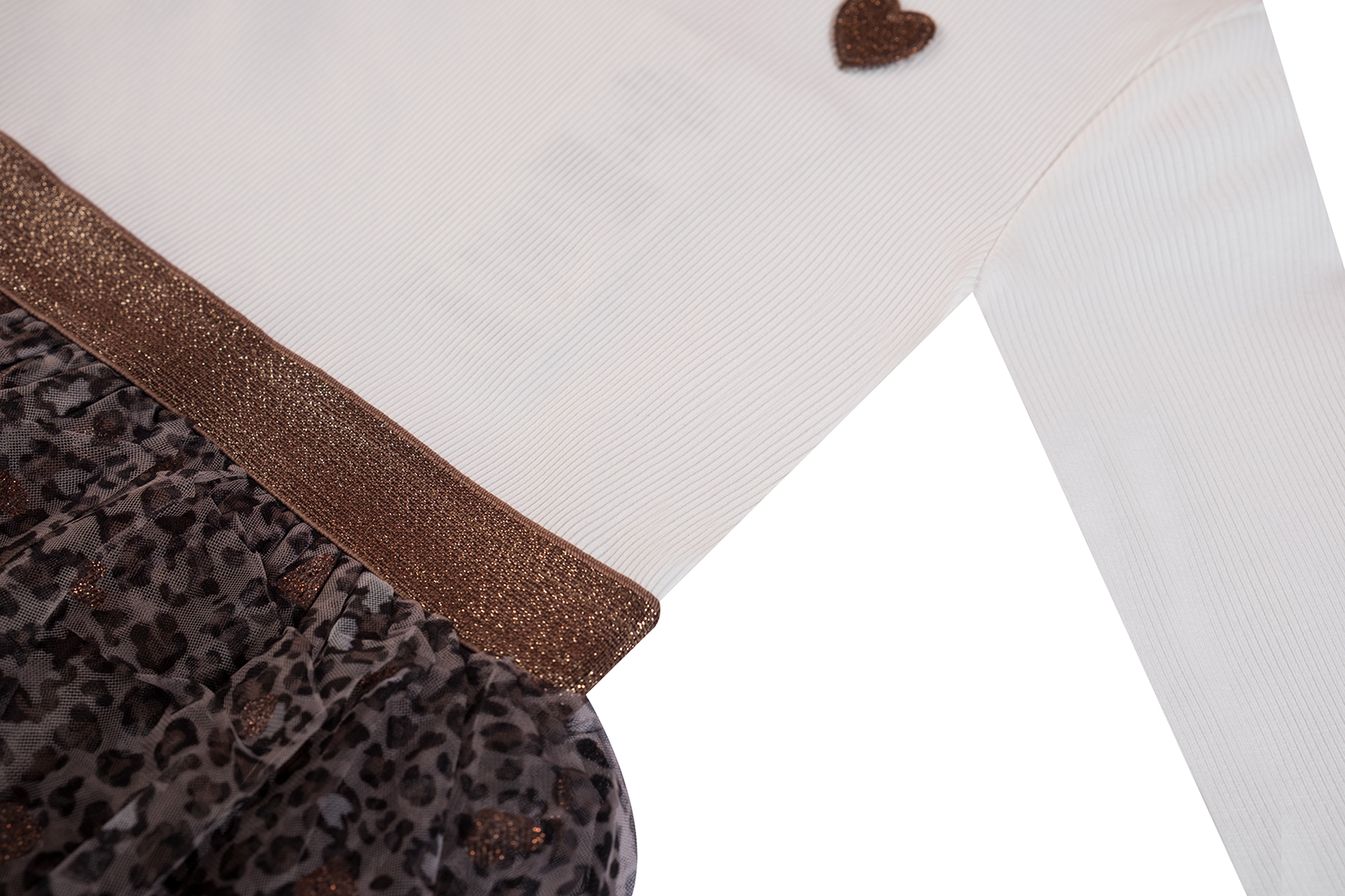 Bezauberndes Leo-Kleid für Mädchen mit Glitzerherz Dieses wunderschöne Kleid kombiniert ein weiches Langarm-Oberteil mit einem verspielten Leo-Tüllrock – ein echter Hingucker für kleine Fashionistas. Auf dem Oberteil funkelt ein Glitzerherz in warmem Braun, das dem Outfit einen besonderen Charme verleiht. Dank des angenehm elastischen Materials (45 % Baumwolle, 45 % Polyester, 10 % Elasthan) bietet das Kleid hohen Tragekomfort und Bewegungsfreiheit.💡 Tipp: Fällt etwas kleiner aus – lieber eine Nummer größer wählen. Ein traumhaft schönes Lieblingsstück für Alltag, Geburtstag oder besondere Anlässe. 🐆✨