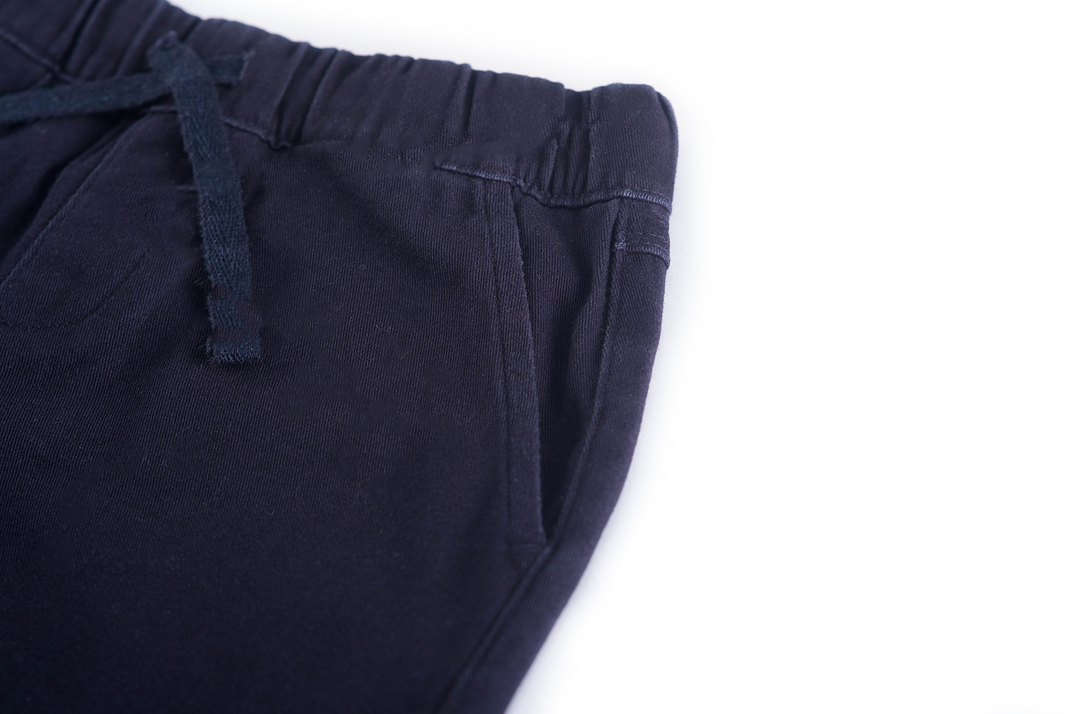 Diese klassische dunkelblaue Hose vereint Komfort und eleganten Look in einem. Durch den elastischen Bund lässt sie sich leicht an- und ausziehen, und zusätzlich kann die Weite innen per Gummizug mit Knöpfen individuell angepasst werden – für eine perfekte Passform.